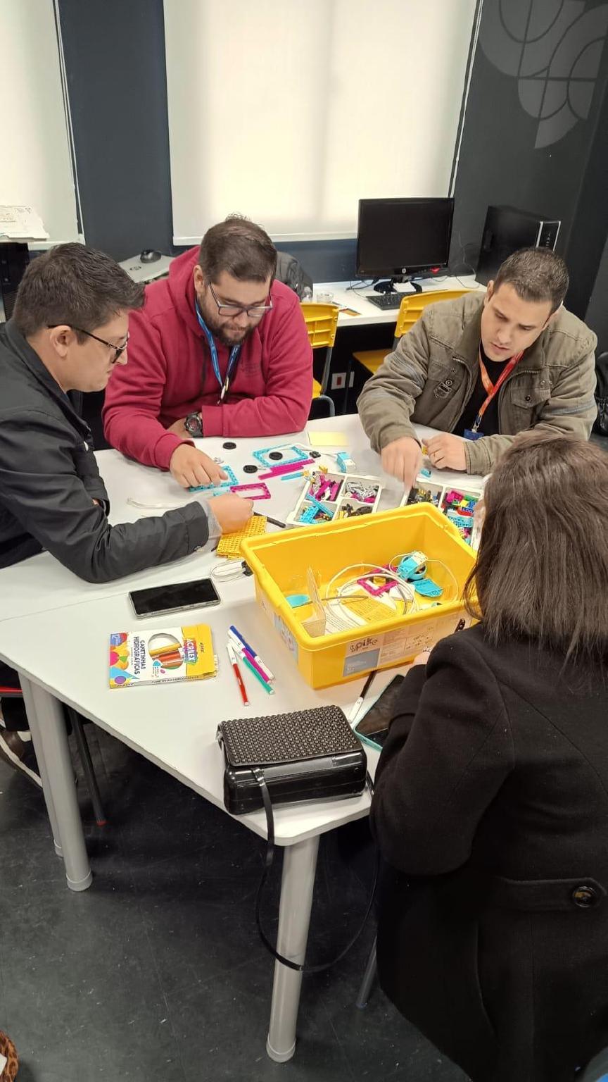 Durante a formação, os professores foram divididos em equipes e puderam experimentar o material proposto utilizando a metodologia chamada de rotação por estações, em que cada estação trabalhava uma atividade relacionada a cada uma das dimensões do programa da Educação Tecnológica.