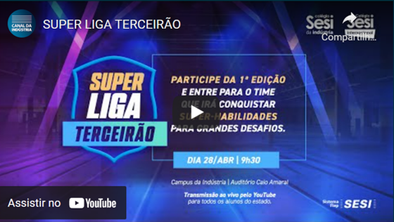 Pensando nisso, todos os mais de 6.800 alunos das 34 unidades dos Colégios Sesi da Indústria e Sesi Internacional com Ensino Médio terão um incentivo a mais, turbinando aquela preparação em alto nível para os próximos desafios da vida. Estamos falando do SUPERLIGA TERCEIRÃO! Aulões especiais com foco no ENEM e nos principais vestibulares do País.